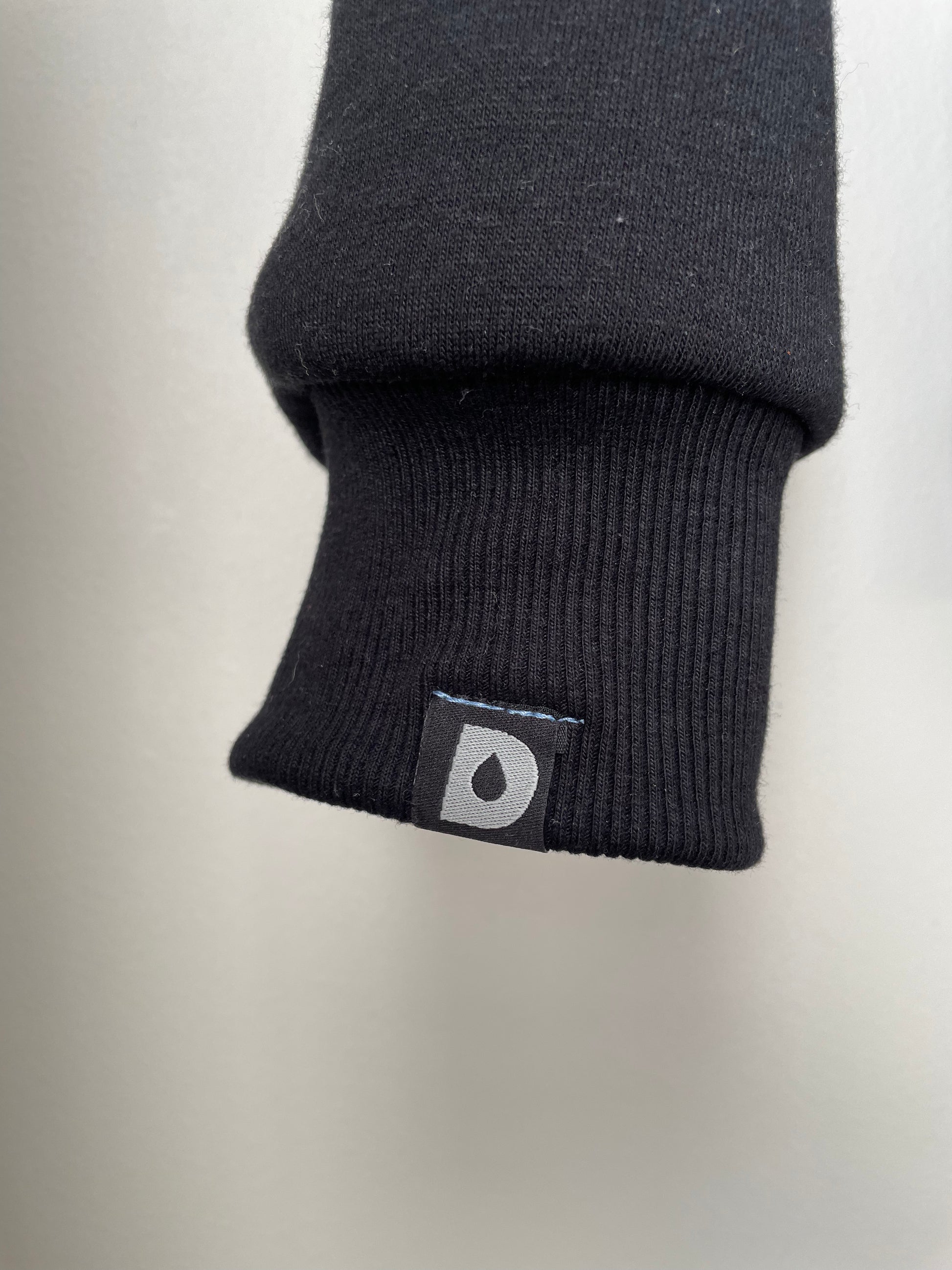 - Signature Droubt Blue threading on stitched hem tag on left sleeve featuring Droubt "D" logo with tagline on the reverse side