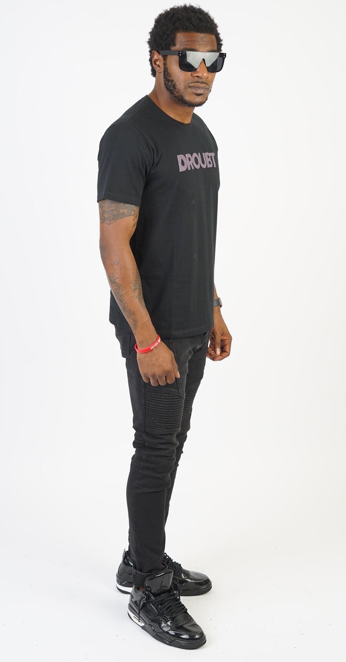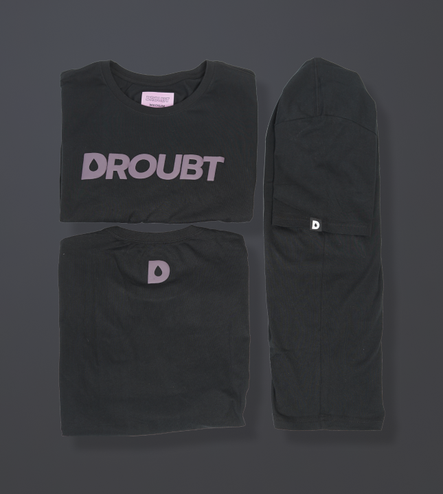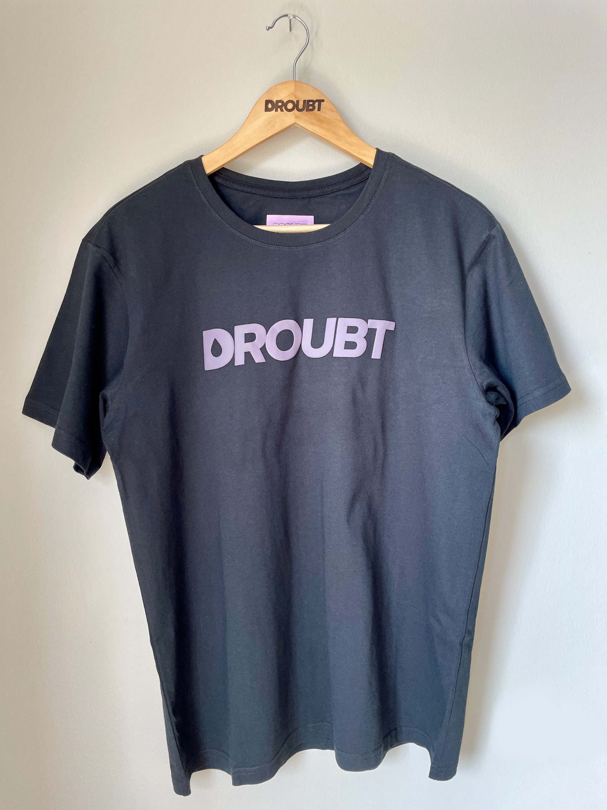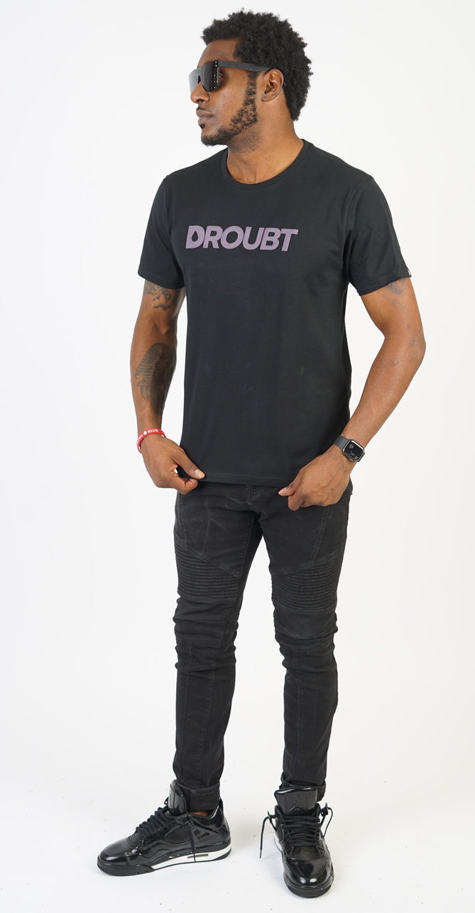 Droubt Signature Tee in Black. Droubt Logo in puff-print center chest and between shoulders. Logo and shirt color tones match so you can wear it anytime & anywhere. Unisex. Fitted fit. Size up for a standard fit.