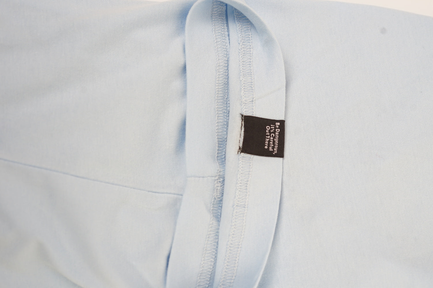 - Stitched hem tag on left sleeve featuring Droubt "D" logo with slogan on the reverse side